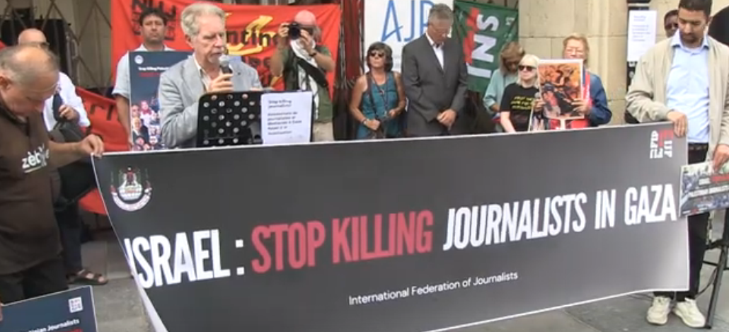 À Bruxelles ce jeudi 26 août, l’Association des journalistes professionnels, l’Union nationale des journalistes, la Fédération internationale des journalistes, le Syndicat des journalistes professionnels ainsi que la RTBF. Ont battu le pavé pour dénoncer les assassinats de reporters dans la bande de Gaza. Dès les premières minutes du rassemblement, les banderoles affichaient un message clair : « Israël, arrête de tuer les journalistes à Gaza ».